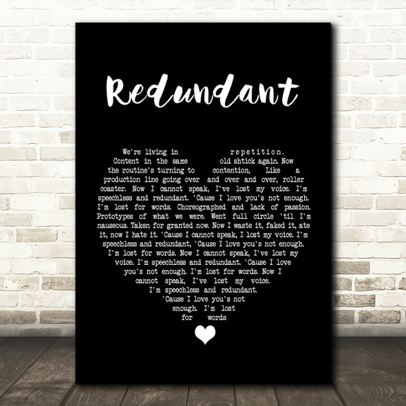 Green Day Redundant Black Heart Song Lyric Wall Art Print